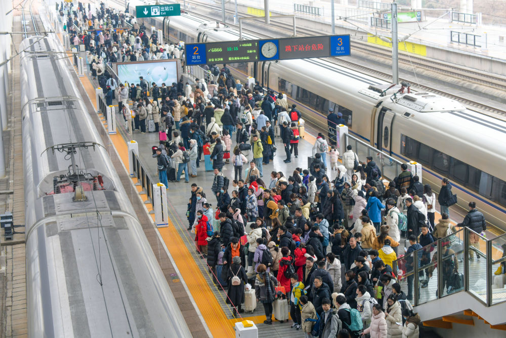 1月3日,旅客在河南省洛阳龙门站乘车。新华社发(张怡熙 摄)